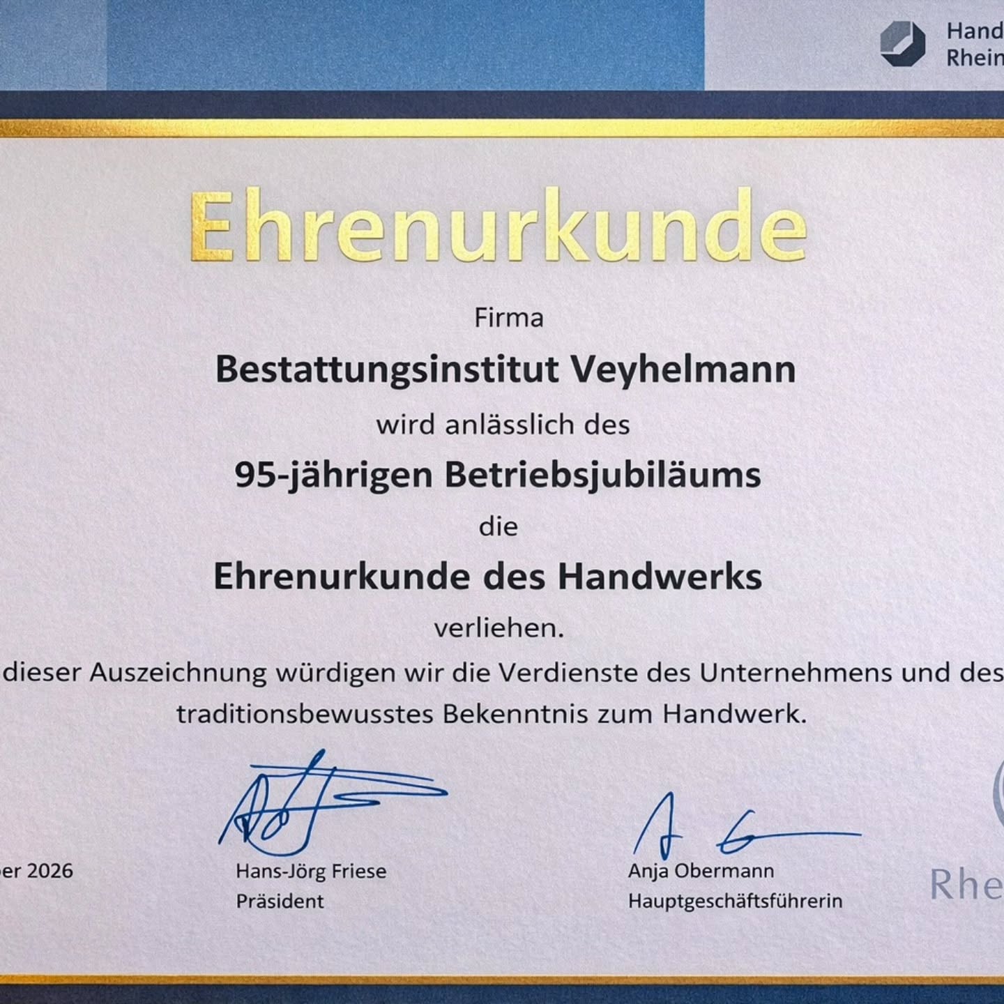 In diesem Jahr feiert das Bestattungsinstitut Veyhelmann sein 95-jähriges Bestehen. Seit fast einem Jahrhundert begleiten wir Familien in schweren Momenten des Abschieds – mit Würde, Respekt und persönlicher Fürsorge.